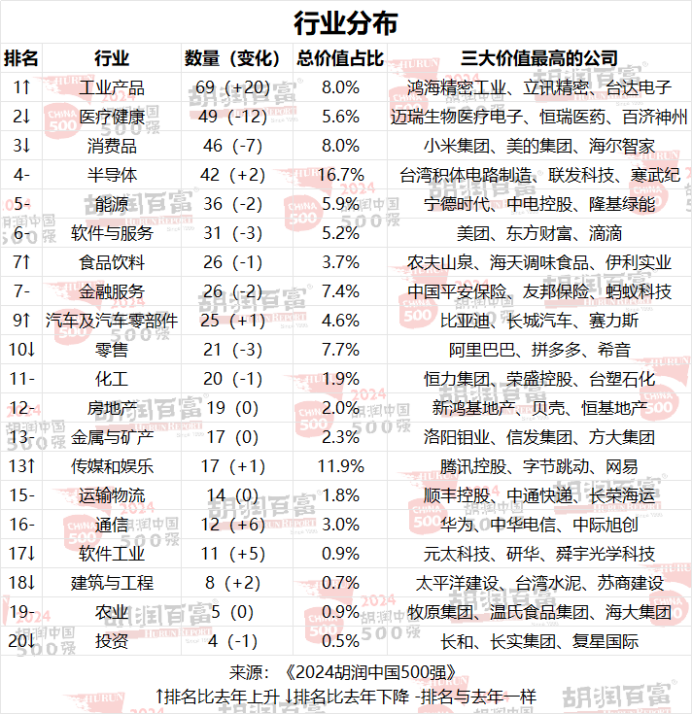 总体来看,2024年的胡润中国500强榜单不仅反映了中国民营企业的强劲增长势头,也凸显了半导体行业在全球科技竞争中的核心地位。随着5G、人工智能等技术的快速发展,半导体企业有望在未来继续引领价值增长。 |