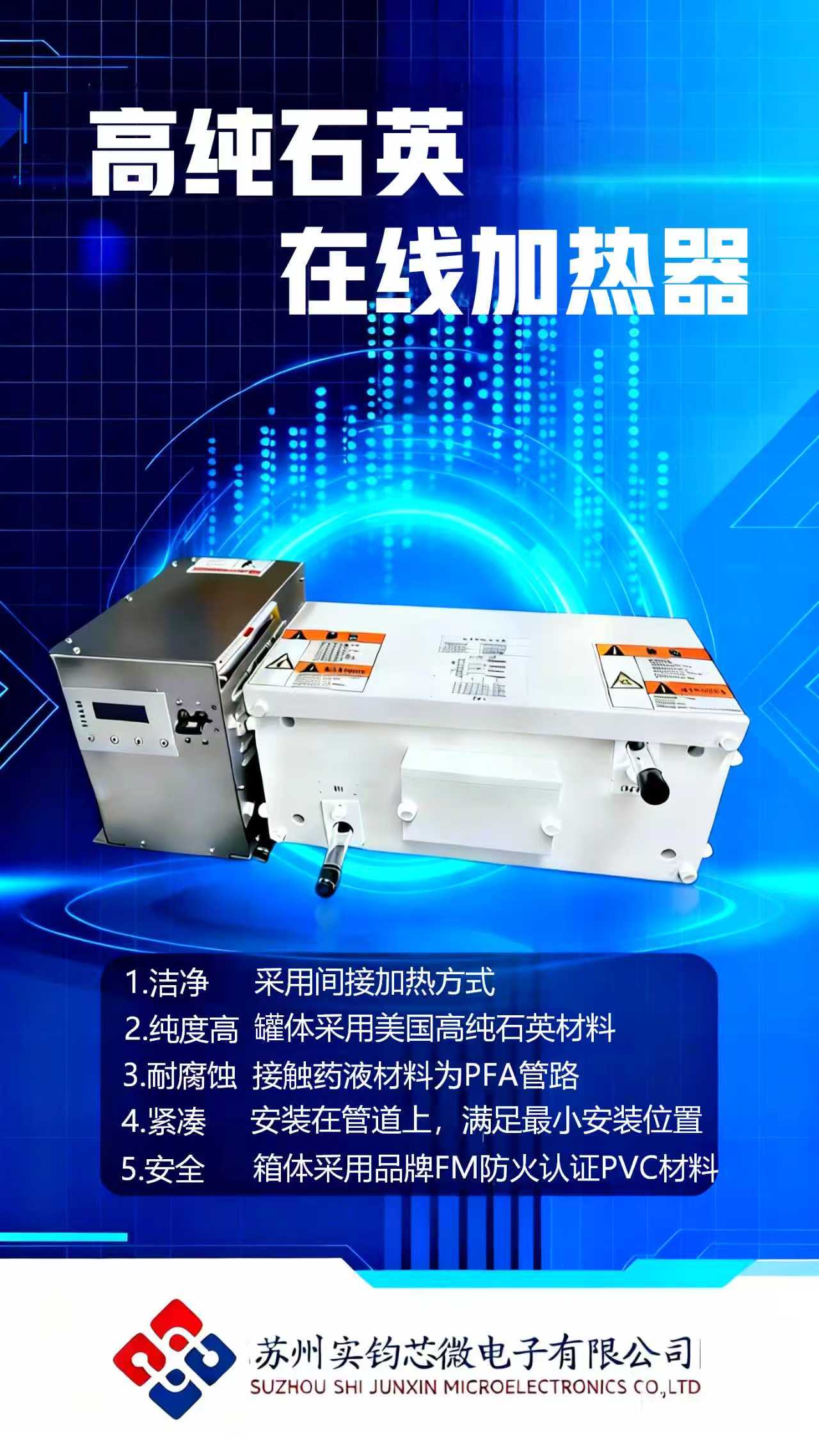 单罐石英在线加热器具备自动恒温控制、节能和安全增强功能(如干烧保护和泄漏检测),使其非常适合晶圆加工的这些关键步骤,其中维持特定温度范围对晶圆的质量和一致性